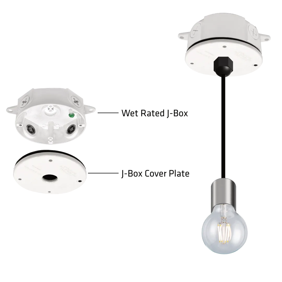 The Decodrop Series combines the look of festoon-suspended Decostrings with the versatility of a single-point drop fixture, ideal for mounting in trees, pergolas, trellises, and various indoor or outdoor applications. Wet-rated for permanent installation, it features a UV-rated power cable, an ETL-rated design, and a durable glazed porcelain socket. Compatible with dimmable LED lamps for customizable ambiance, Decodrop offers a wide selection of shades, sizes, and finishes, with options for custom, signature designs to enhance any residential or commercial space with style and character.
