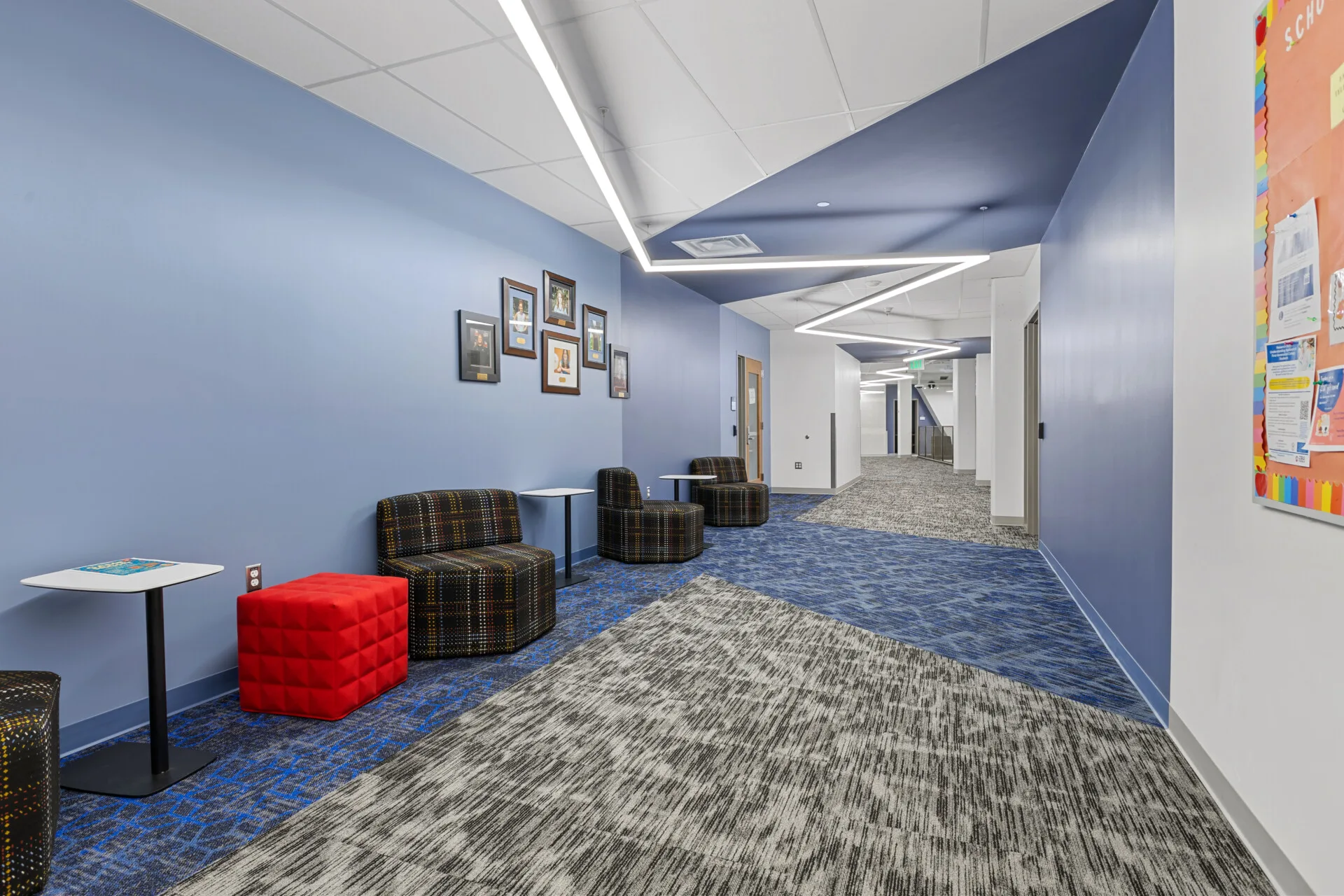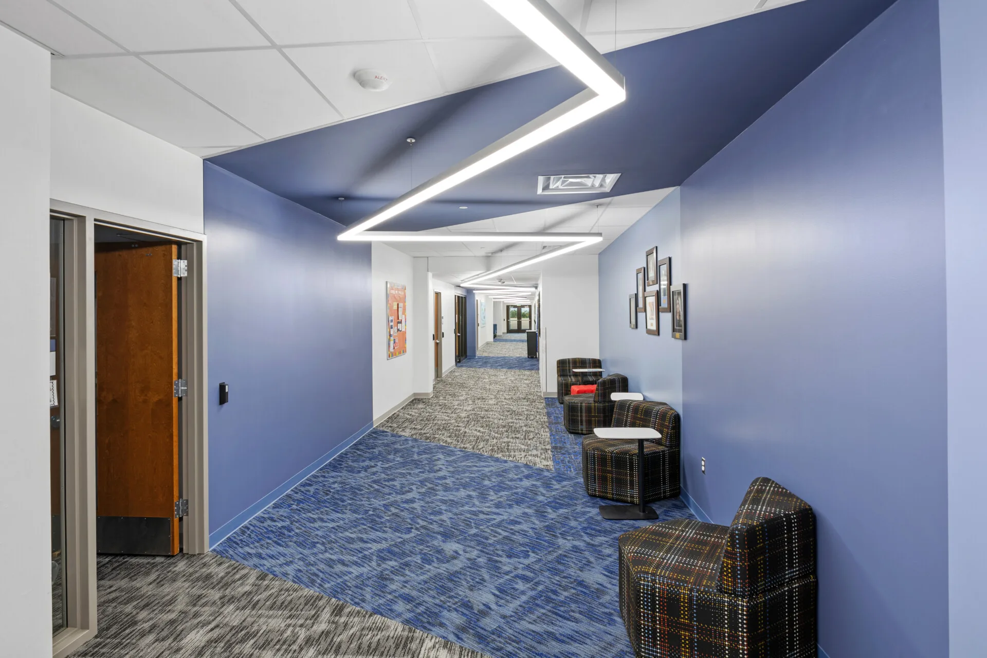 At Colorado State University Pueblo’s Technology Building, creativity and customization come together in a lighting installation that highlights the full potential of Primus Lighting’s Linea series. In collaboration with our representative, MH Lighting, this project demonstrates how our linear solutions are uniquely suited for tailored applications, transforming standard hallways into bold architectural statements. Throughout the building, custom Linea fixtures were crafted into striking zig zag patterns that flow through the corridors and gathering areas, infusing the space with rhythm, energy, and light. These runs were designed specifically for the contours of the space, illustrating how the Linea series goes beyond off the shelf solutions to meet the exact vision of the architect and designer.